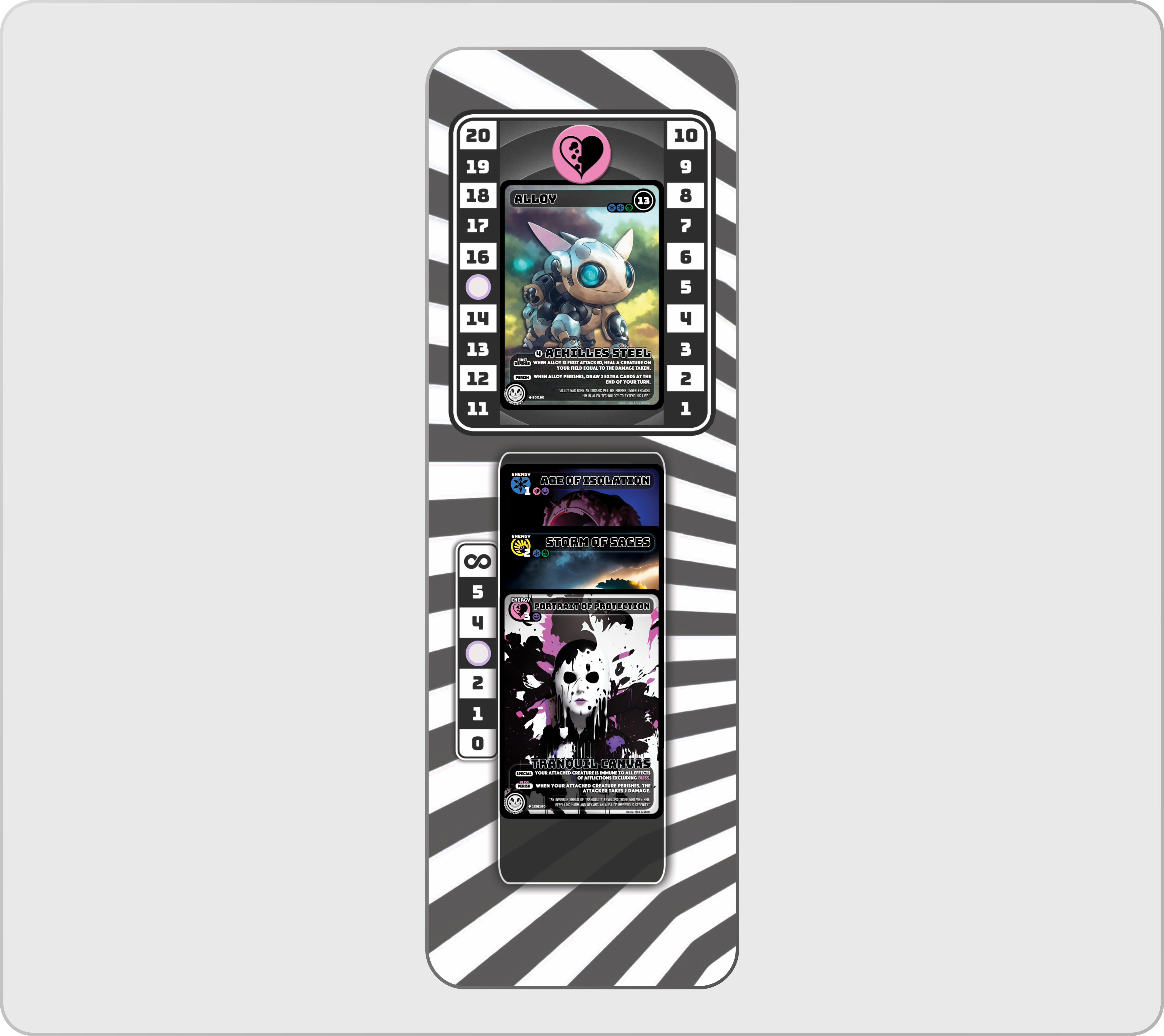 In the rare instance that a player has no creature on their field to attack during an opponent’s turn and the opponent has an active creature to attack with, this is counted as an automatic perish for the opponent and they are thus rewarded with a Relic.  In this instance, since no actual creature was voided, no Mischief card is drawn.  If a player is ever unable to or chooses not to attack an enemy creature during their turn, they must void 2 cards from their hand instead.  At the end of every player’s turn, they must draw from their deck until they have 6 cards in hand.  If a player already has 6 or more cards in hand at the end of their turn, they draw 1 card from their deck.  While there is no hand limit, no player is permitted to draw this extra card at the end of their turn if their hand size exceeds 9 cards, unless they void a card from their hand first before drawing.